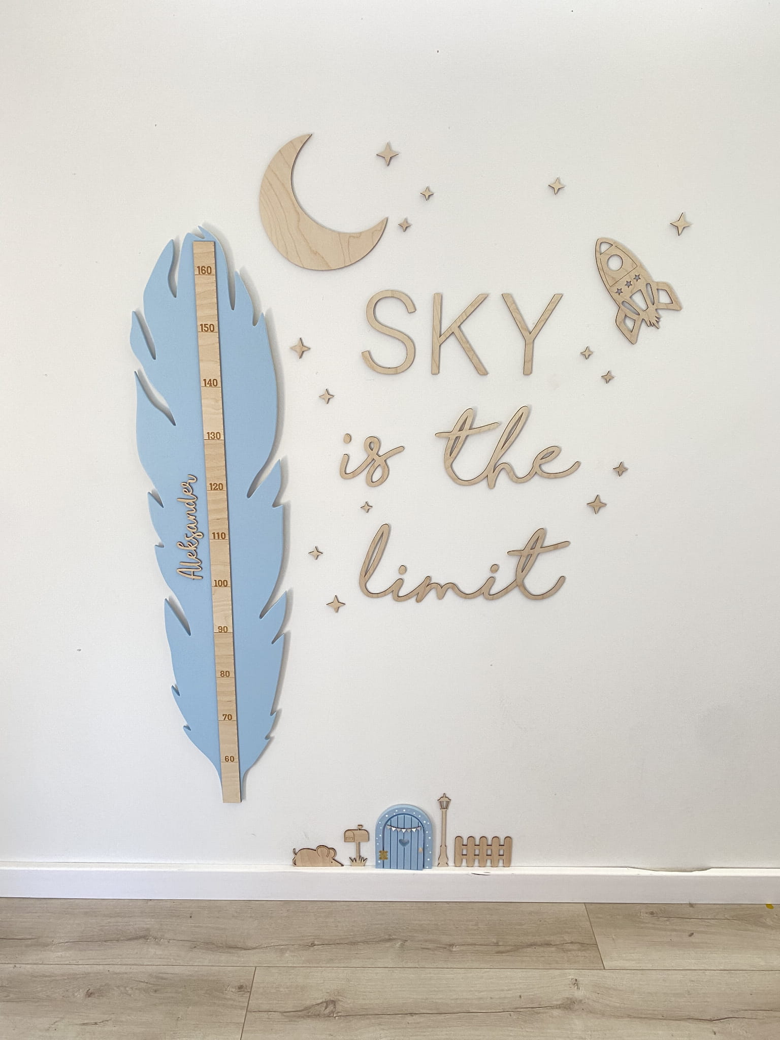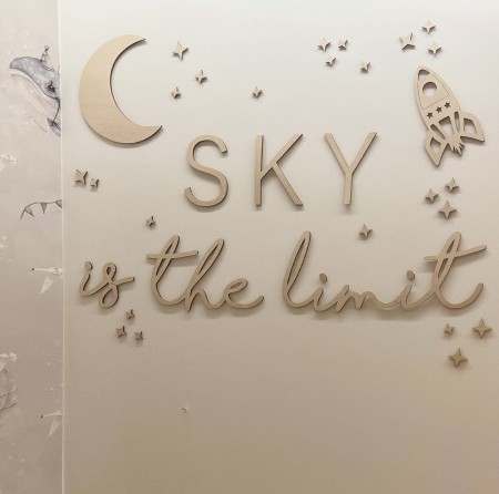 Drewniana dekoracja ścienna do pokoju dziecięcego "SKY is the limit"