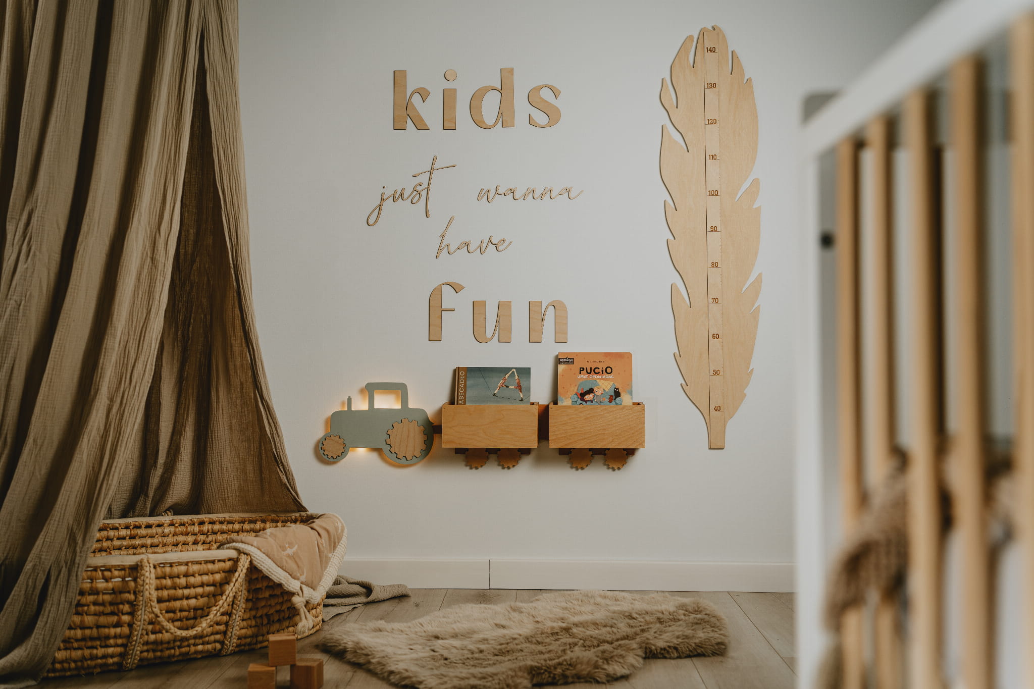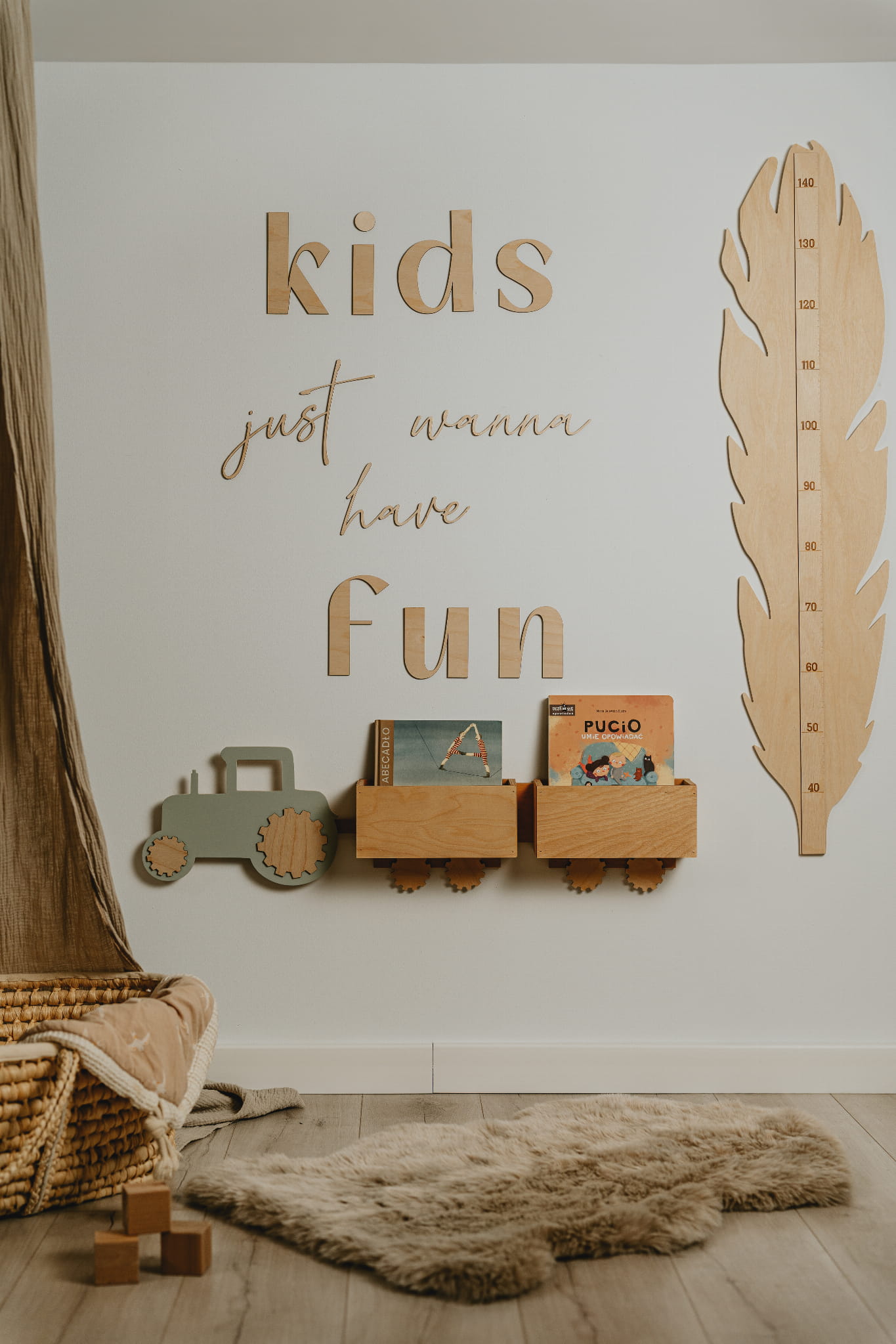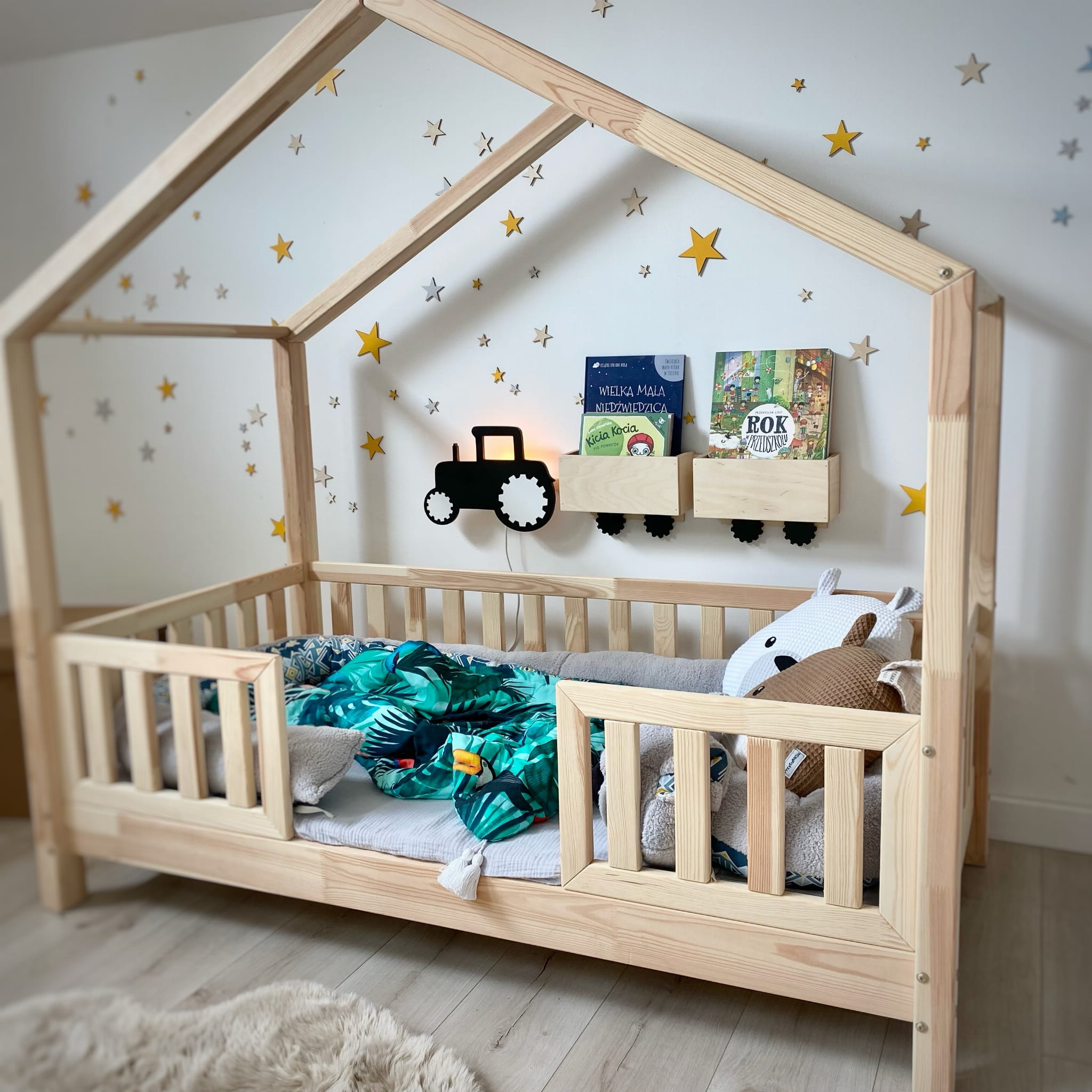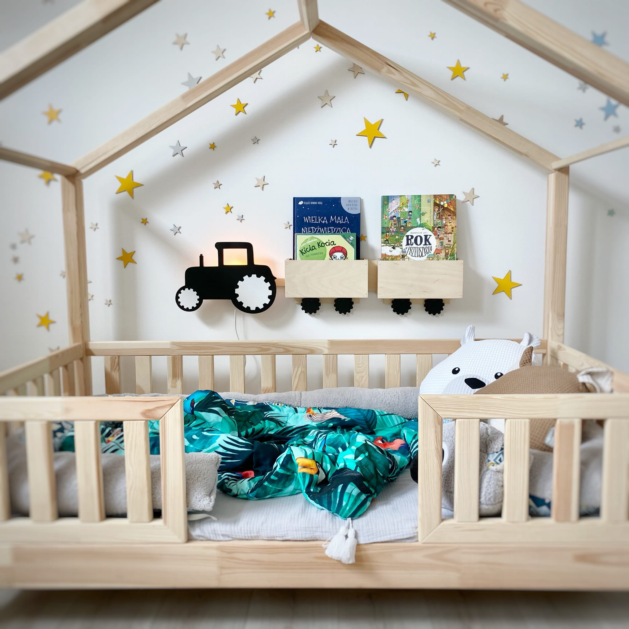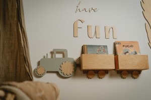 Najlepsza półka to taka, która jest funkcjonalna i dostosowana do potrzeb dziecka. „Traktor z przyczepami” oferuje miejsce na książki, zabawki lub dekoracje, a przy tym oświetla przestrzeń, tworząc przytulny klimat. -